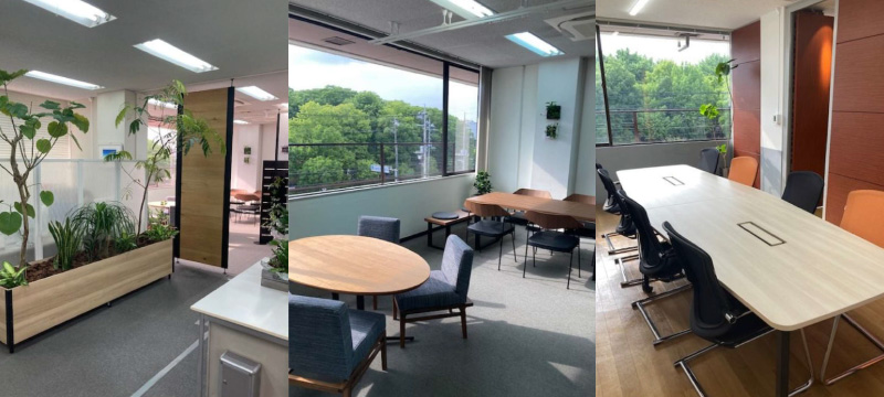 オフィスは「癒し」をテーマに、植物を多く配置し、コラボレーションルームや2か所のカフェコーナーを設けるなど、来訪者の方はもちろん、社員にとっても心地よい空間づくりを大切にしています。